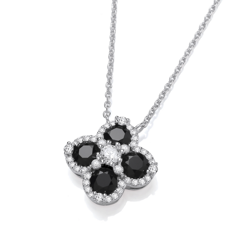 Add a touch of elegance and luck to your jewellery collection with the Black Four Leaf Clover Silver Necklace. Crafted from high-quality silver, this necklace features a striking four-leaf clover design adorned with dazzling black stones. The centerpiece is enhanced with a delicate silver halo, creating a perfect balance of sophistication and charm.