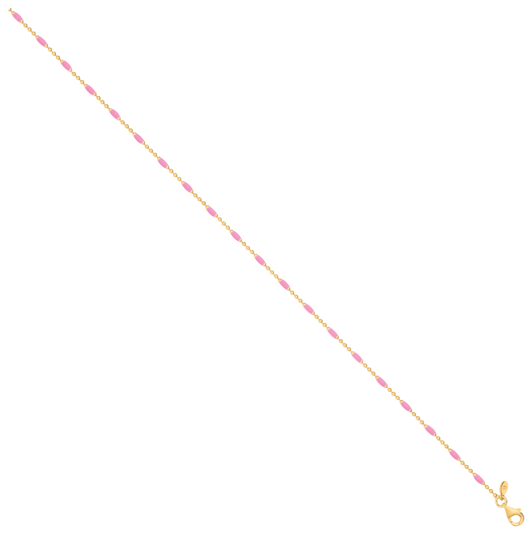 Turn heads with this dainty yet vibrant pink enamel anklet, crafted in sterling silver and finished with a luxe yellow gold plating. With its fine 2.0mm design and lightweight 2.3g build, this 10" anklet is perfect for effortless everyday elegance. The glossy pink enamel links add a playful pop of color, secured with a classic lobster clasp for all-day comfort.