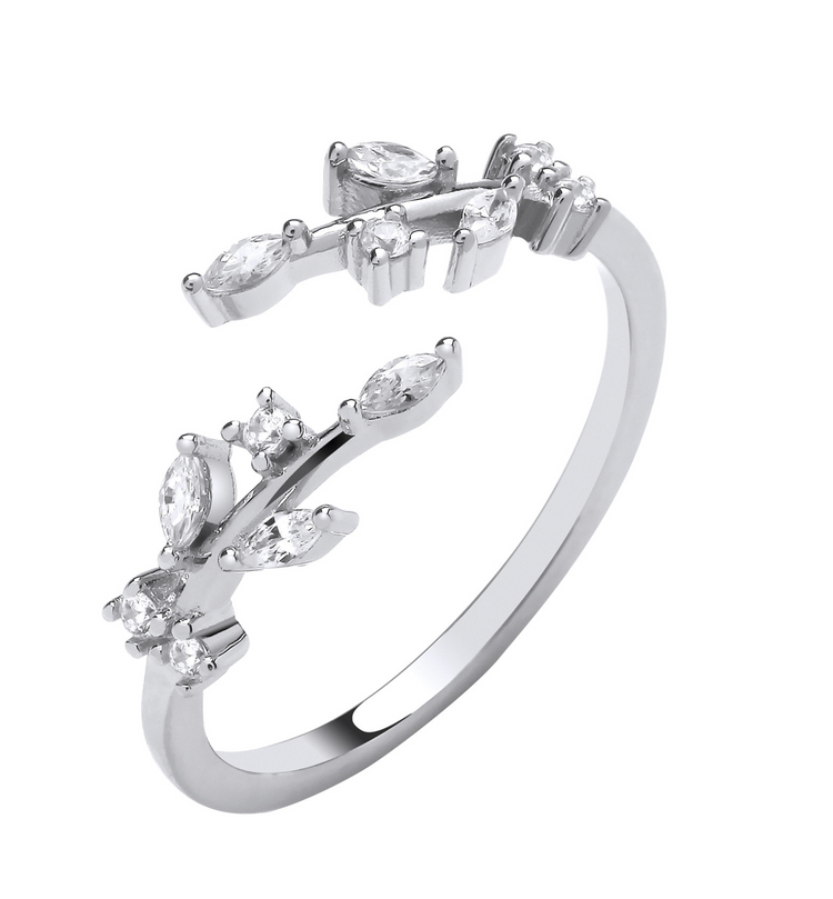 A versatile accessory for casual outings or formal occasions, this ring is a must-have addition to your jewellery collection or a thoughtful gift for a loved one. Let the Silver Cross-Over Leaf Design CZs Ring add a touch of natural grace and sparkle to your style!