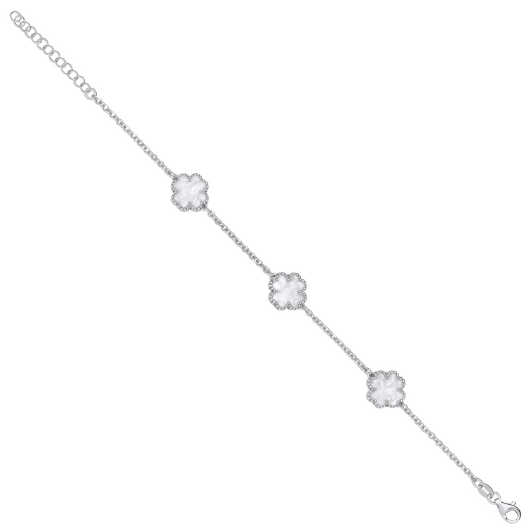 Silver WHITE Enamel Four-Leaf Clover Bracelet