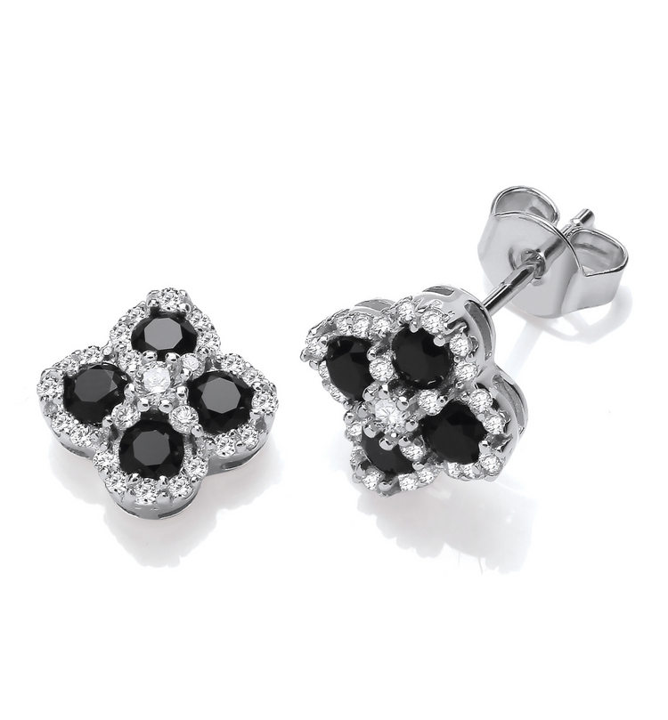 - Black cubic zirconia stones surrounded by clear CZ accents.