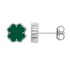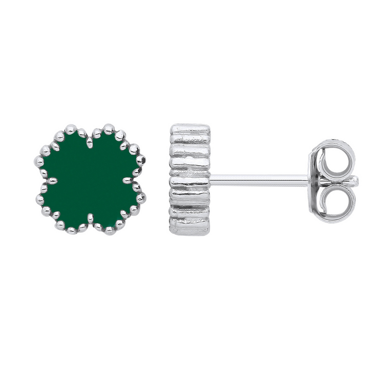 Silver Green Enamel Four-Leaf Clover Stud Earrings