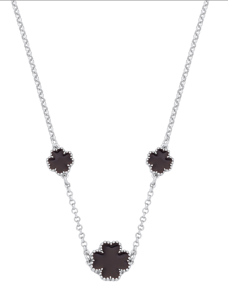 The Silver BLACK Enamel Four-Leaf Clover Necklace is a sleek and versatile accessory. Here's a detailed overview: