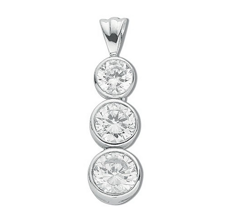 Silver Rubover Set CZ Trilogy Drop Pendant