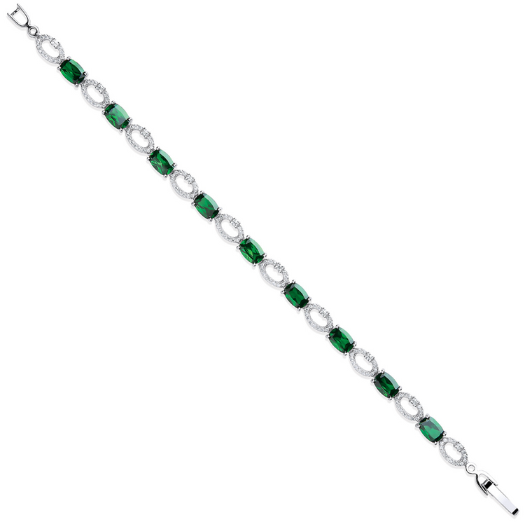 - Design: Oval cut green and clear cubic zirconia (CZ) stones set in a tennis bracelet style