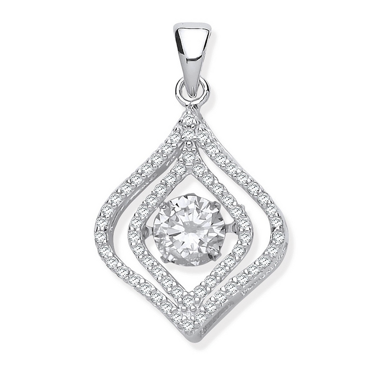 Silver CZ Pendant with Hanging Shimmering Clear CZ
